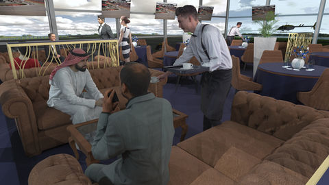 bar and dining, with floor-to-ceiling panoramic viewing and live, on-screen action